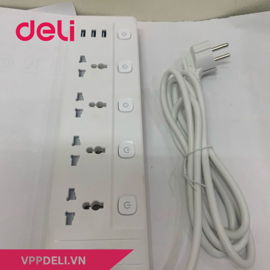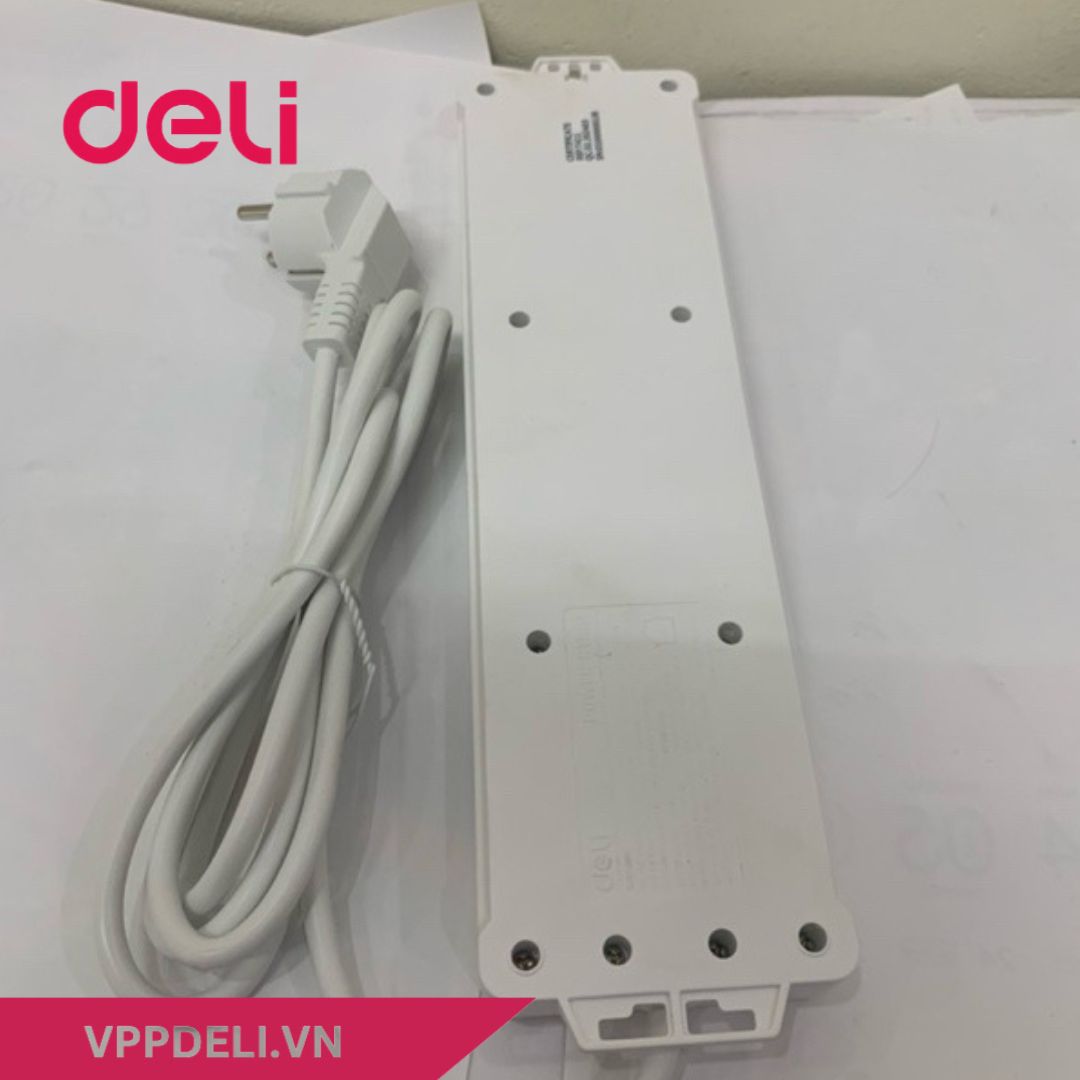 - Ổ cắm điện DELI ET411 4 ổ cắm có lá nhựa bảo vệ, giúp chống bụi và an toàn cho trẻ nhỏ.